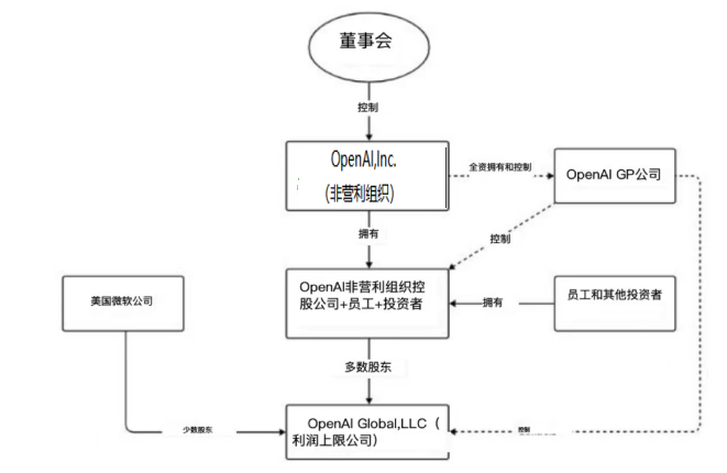 马斯克退出公司董事会后一度陷入绝境,OpenAI最困难的时刻,微软以“白衣骑士”的形象出现。资料显示:OpenAI依然属于非营利性组织,为了活下来,成立了营利性子公司OpenAI Global,OpenAI对营利性子公司OpenAI Global拥有完全控制权。