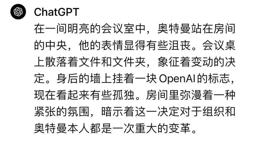 图注:用户使用ChatGPT描写的OpenAI CEO被开除场景