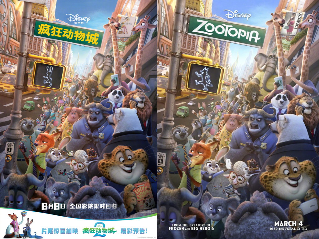 8月8日起,迪士尼出品、迪士尼动画工作室制作的人气作品《疯狂动物城》(Zootopia)将限时回归中国大银幕。这也是继2020年之后,《疯狂动物城》的第二次重映,其意显而易见是为计划于今年11月亮相的《疯狂动物城2》造势,因此正片的片尾也会加映《疯狂动物城2》的预告。