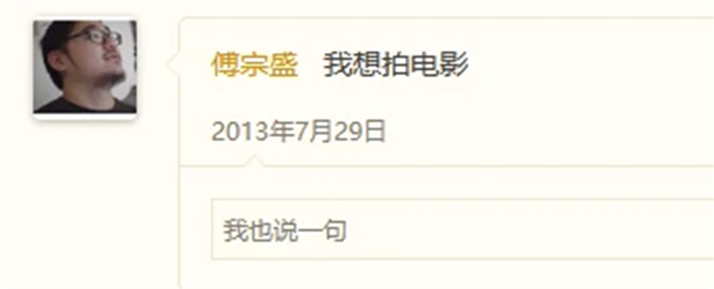毕业后,傅宗盛也尝试过一些朝九晚五的工作,但都不喜欢,于是在家宅了很多年,从2D到3D制作简单的动画。而在制作动画的过程中,他认识了有才华的编剧朋友,开始对内容创作产生兴趣。另一方面,动画制作对于非专业的个人而言,实在是费时费力,而拍摄视频相对动画而言制作成本更低,也有更多的试错空间,于是他便与编剧朋友两人组队,准备一起制作电影。