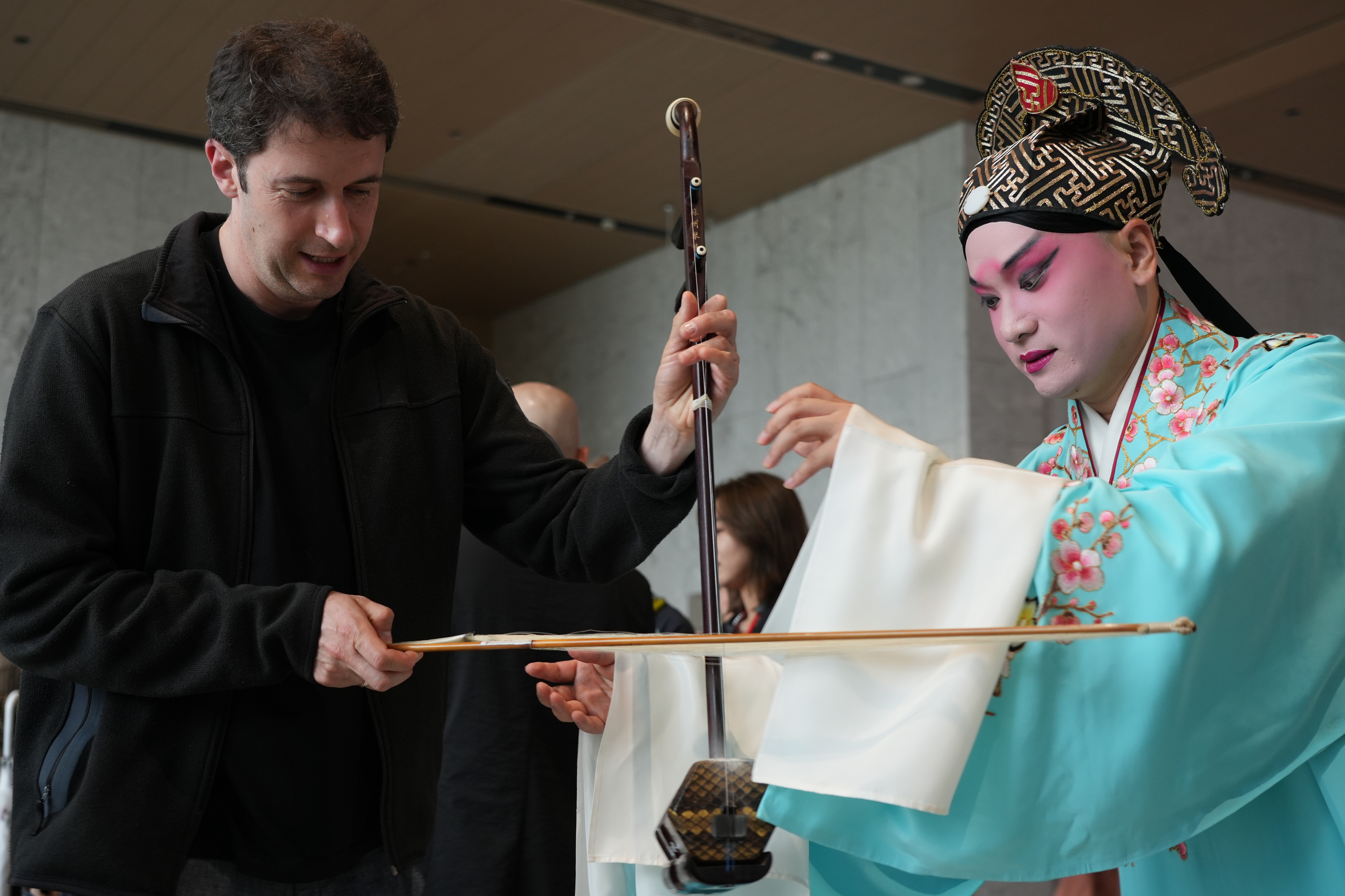 演出之外,他和同事们在上海博物馆东馆漫步,和上海昆剧团的音乐家对话。他对二胡爱不释手,情不自禁拿起弓子拉起来,“虽然演奏习惯、发声机制不同,但音乐家总是可以与世界各地的音乐无障碍交流。”这位出生于美国的小提琴家,也是一位地道的“中国女婿”,对中国文化有着盎然的兴趣。