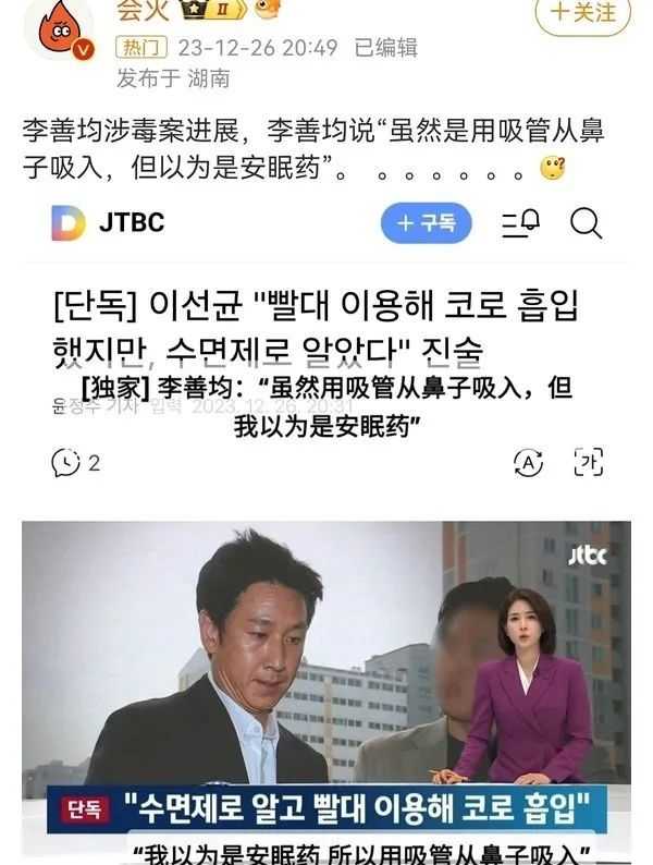 反正現在說什麼都是晚了,不要再消費他了,除了疑似出軌的私生活錄音外,李善均吸毒但是經過檢測證明是陰性,他也否認過,以為是安眠藥,用吸管從鼻子吸入的。