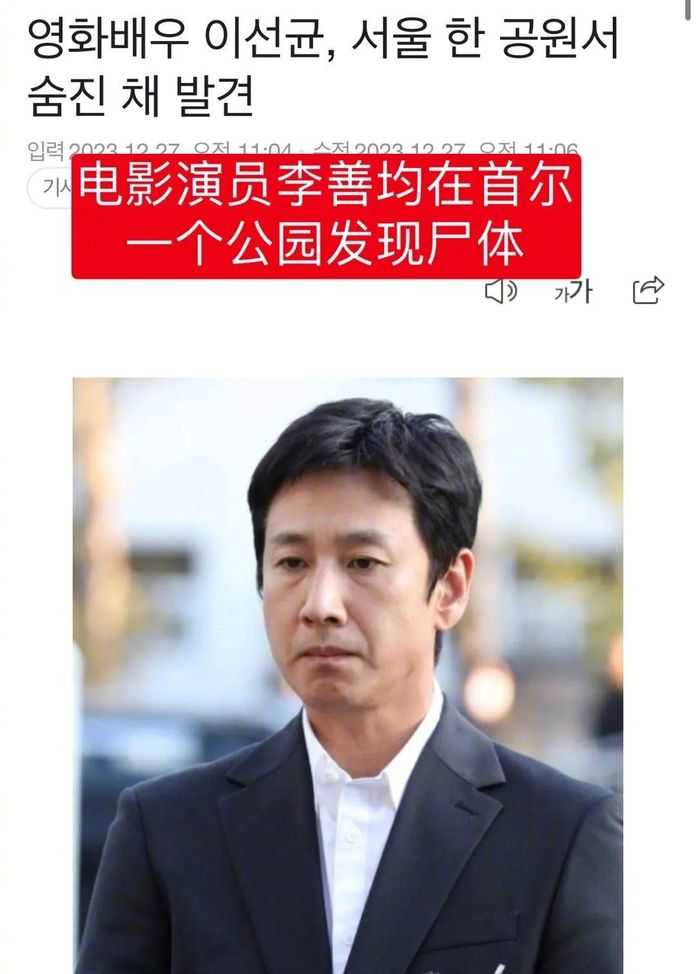 2023年12月27日,韓國娛樂圈傳來一個噩耗: