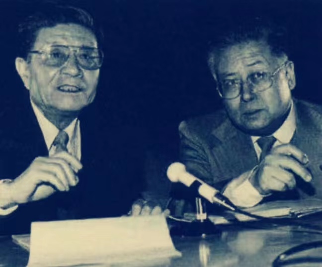 《不尽长江》1982年演出剧照 顾威(中)饰演郑维中