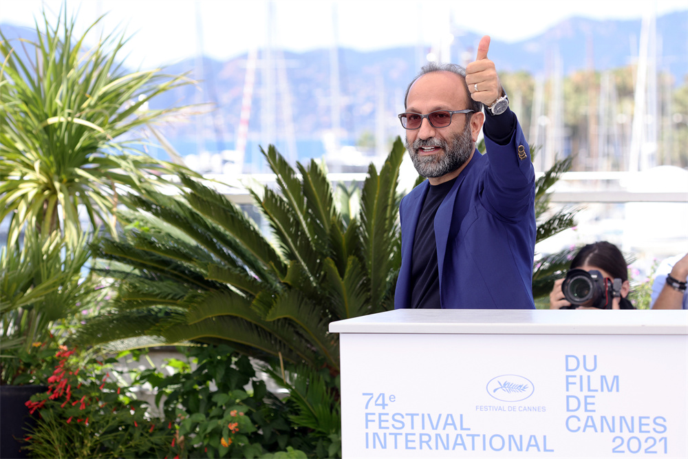 当地时间2021年7月14日,导演阿斯法·法哈蒂出席第74届戛纳电影节主竞赛单元影片《一个英雄》记者会。视觉中国 图