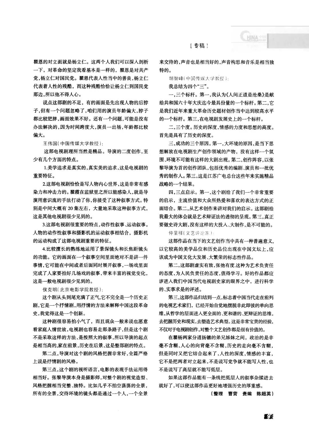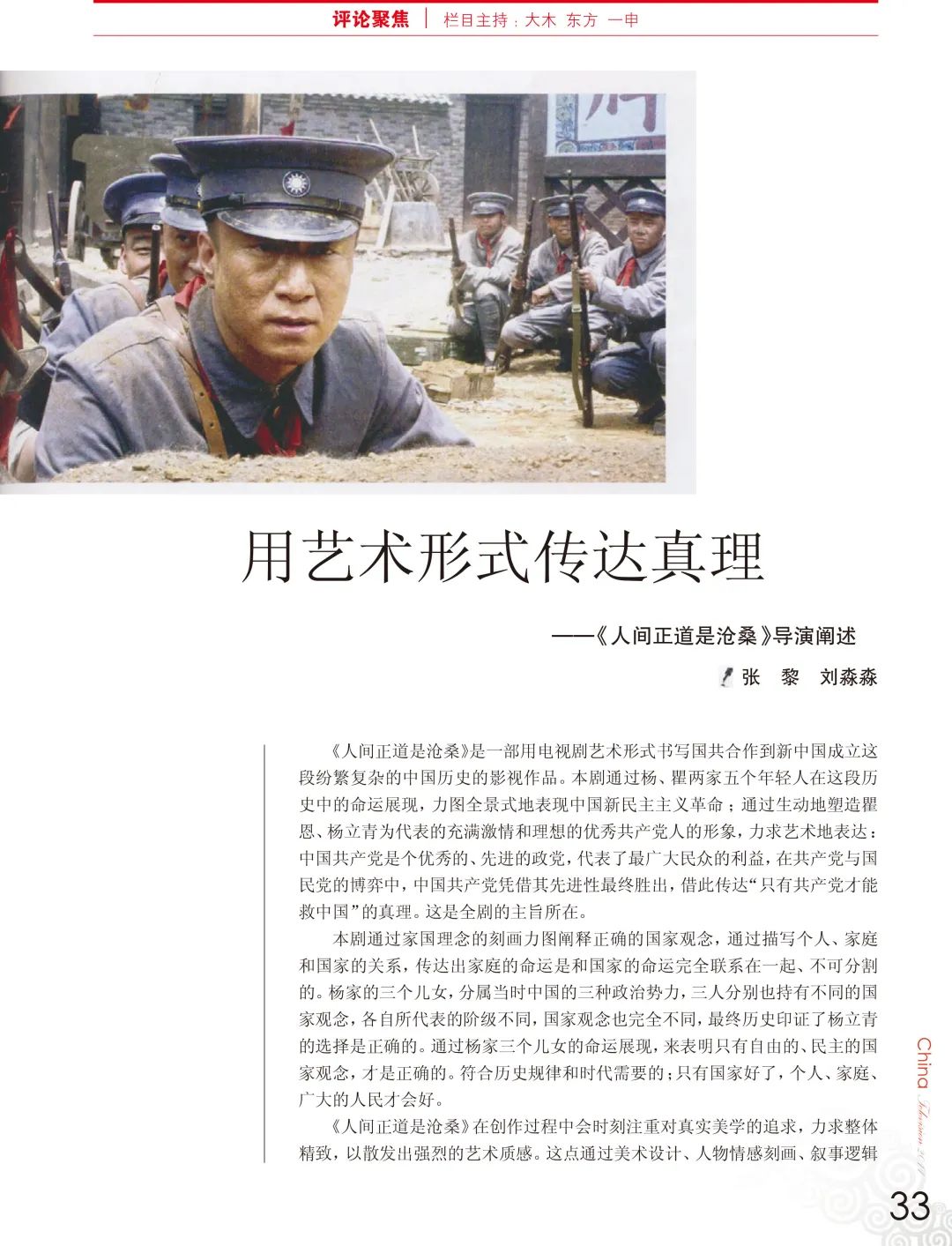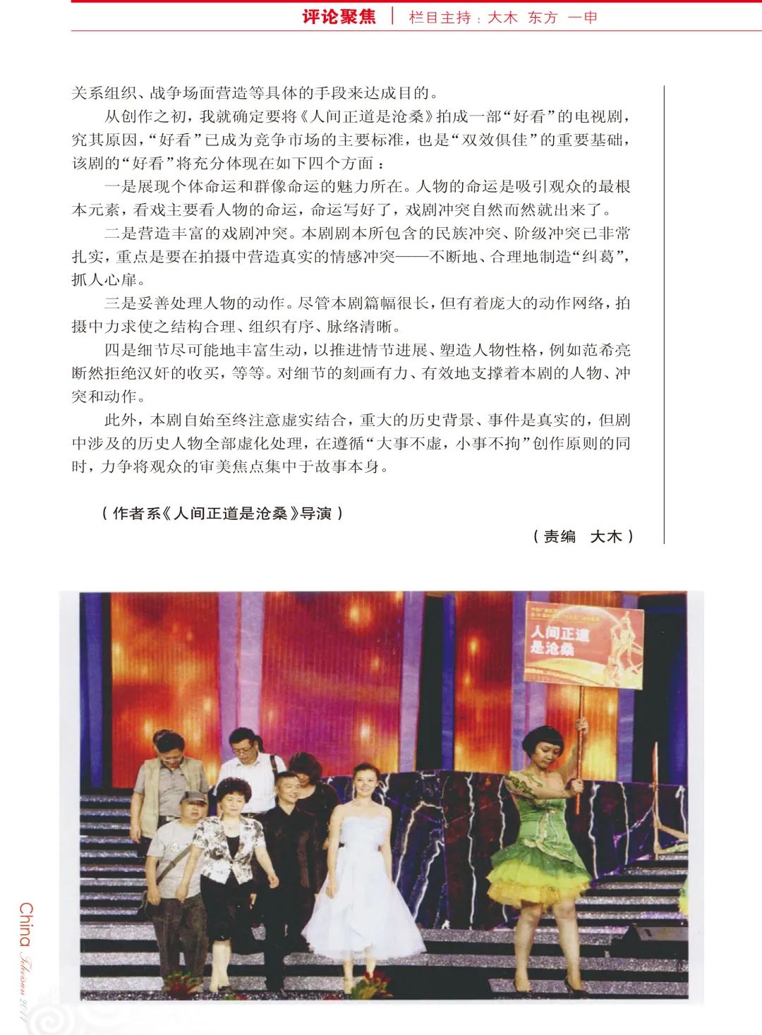 附:《中国电视》 2011年第9期《用艺术形式传达真理——<人间正道是沧桑>导演阐述》(作者:张黎 刘淼淼)