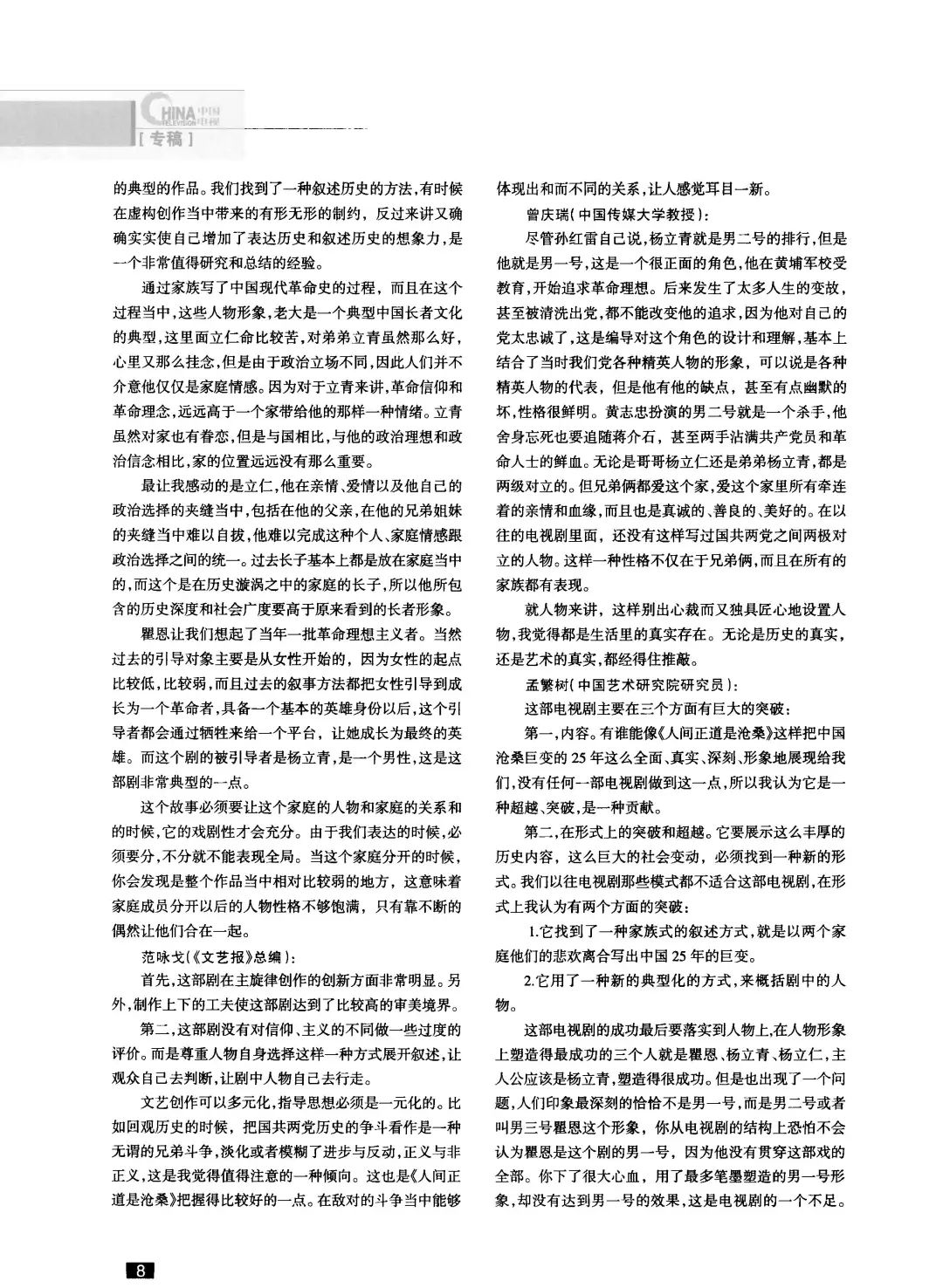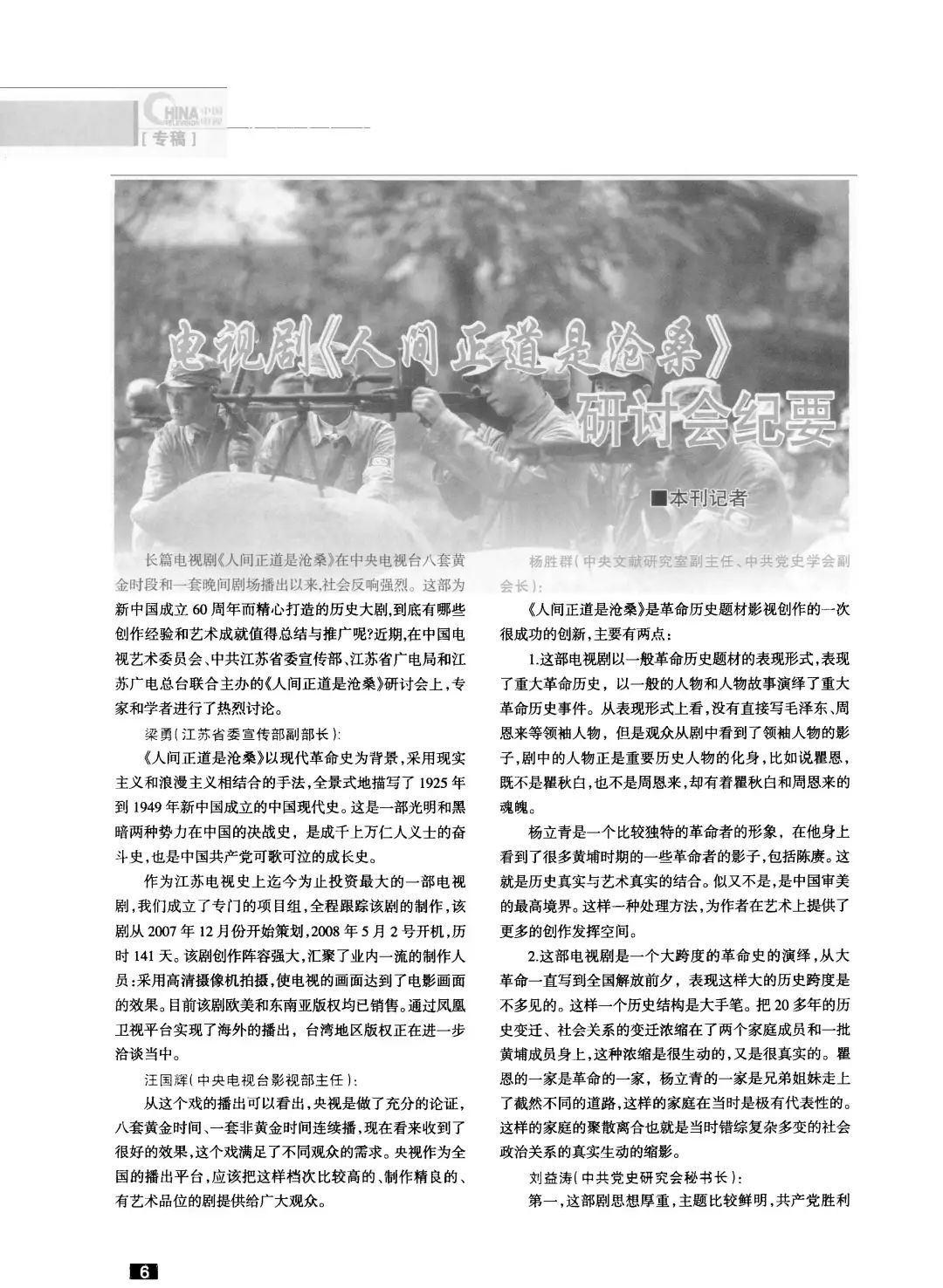 《中国电视》 2009年第8期《电视剧<人间正道是沧桑>研讨会纪要》